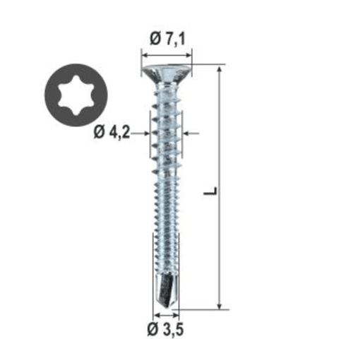 DÜNNBLECHBOHRSCHRAUBE M4 SK-ZN-TX20 2412100-4-16 4X16 MM