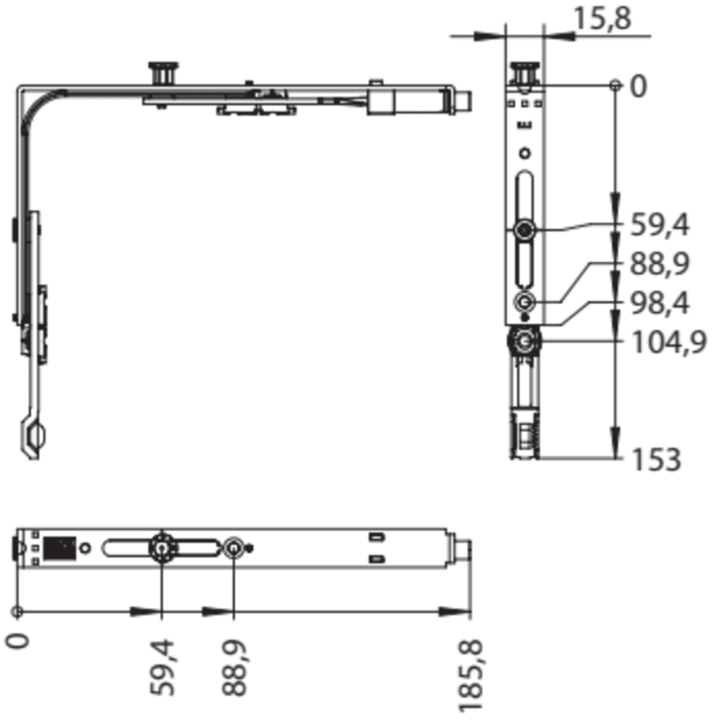 Drehkipp- Eckumlenkung, für nicht rechtwinkelige Ecken, easyPilot Nordic, E1.W.FB-GV, Stahl, silber verzinkt