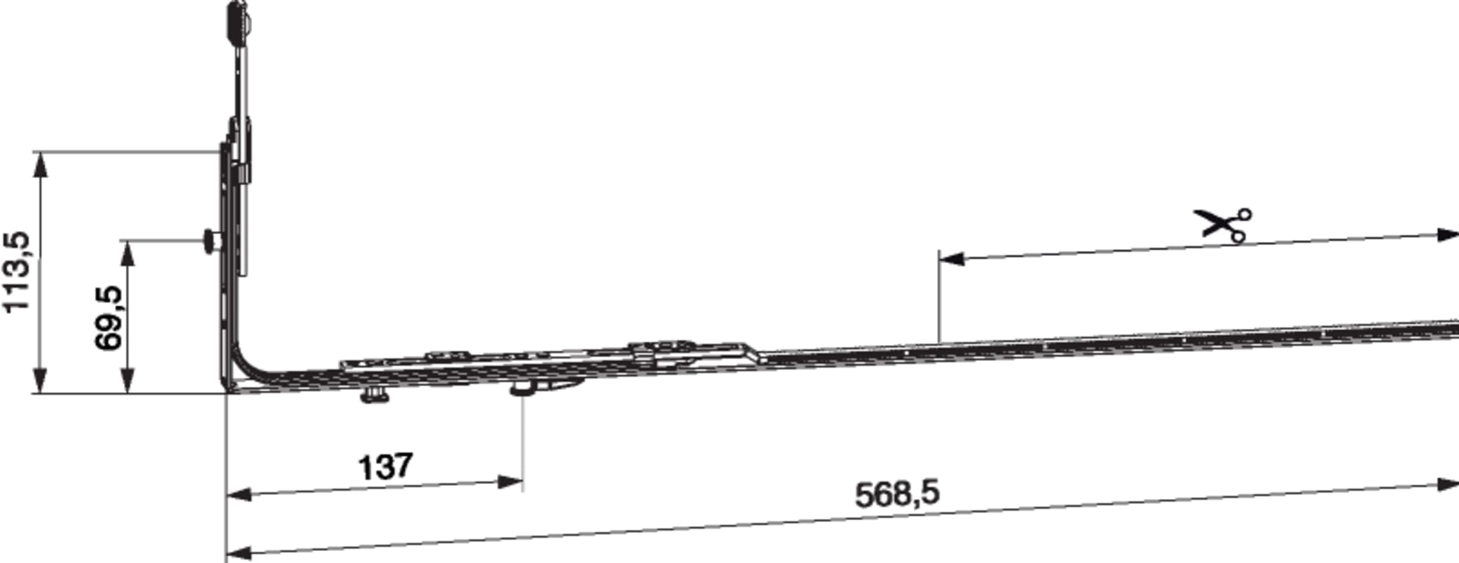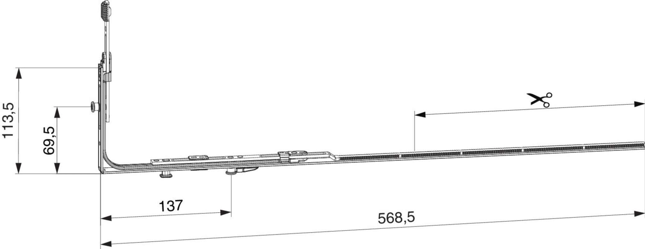 MM Eckumlenkung waagrecht für Rundbogenfenster für variable Getriebe ablängbar mit 2 i.S. FFB 450-1.300 Tricoat-Evo