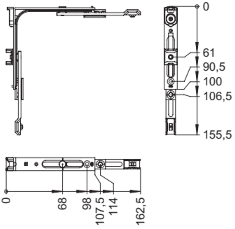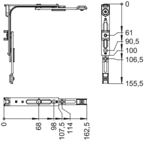 Winkhaus Drehflügel-Drehlagerschiene, DSV-3/1, DIN Links-Rechts, Stahl, silberfarbig, zn 1791078