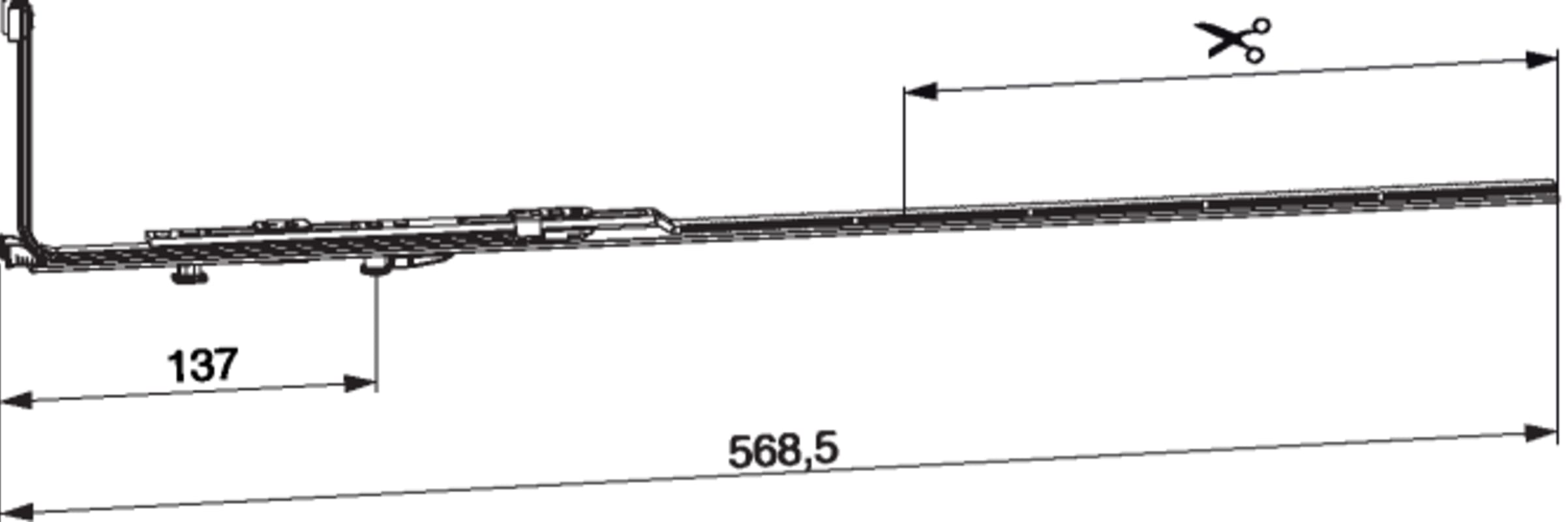 MM Eckumlenkung waagrecht für Rundbogenfenster ablängbar mit 1 i.S. FFB 450-1.300 silber