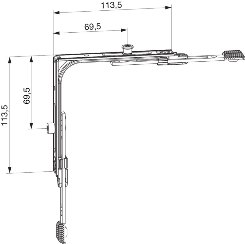 MM Eckumlenkung mit 1 i.S. und 1 Magnetzapfen FFB 320-1.650 FFH 360-2.450 Tricoat-Evo