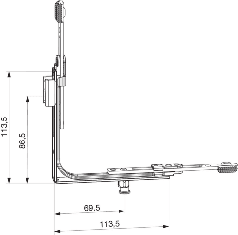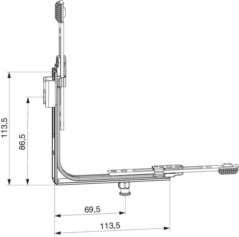 MM Eckumlenkung für Bodenschwelle für variable Getriebe mit i.S. 18L und Schließteil FFB 260-1.800 FFH 360-2.800 silber