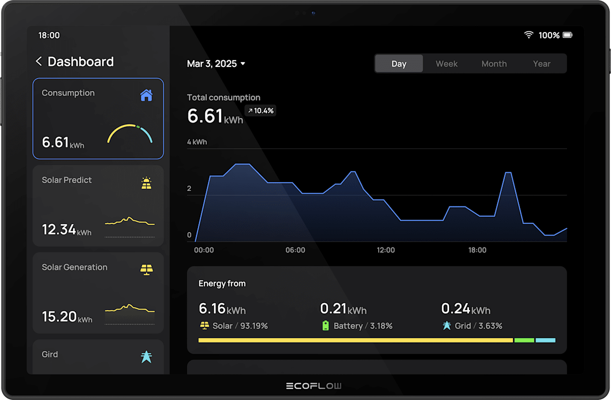 Der EcoFlow PowerInsight 2 ist das visuelle Steuerzentrum für Ihr intelligentes Energiesystem zu Hause. Über den 11-Zoll-Touchscreen mit 1920×1200 px Auflösung lassen sich alle Energieflüsse in Echtze