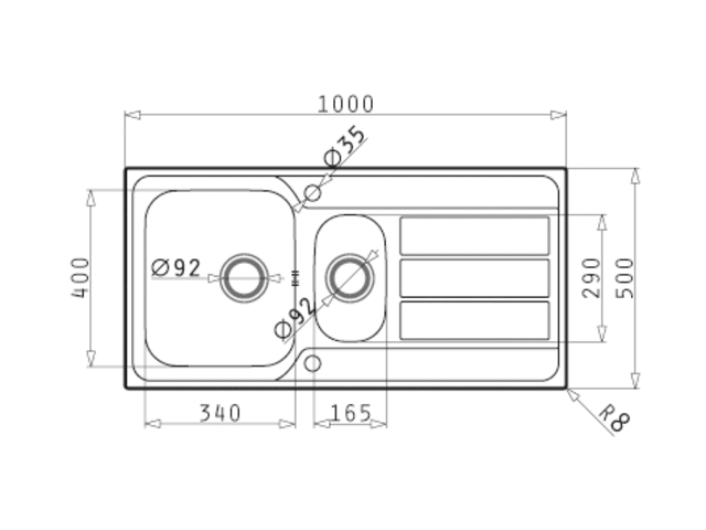 EINBAUSPÜLE EDELSTAHL ATHENA 5 1000X500 3377060019