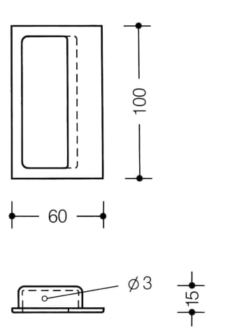 Einlassmuschel Modell 539 aus durchgefärbtem mattem Polyamid, rechteckige Form 100 x 60 mm, Einlassmaße 90 x 42 mm, Einlasstiefe 15 mm, mit einseitiger Griffmulde. Artikel: HEWI 539B FB 90 Farbe: