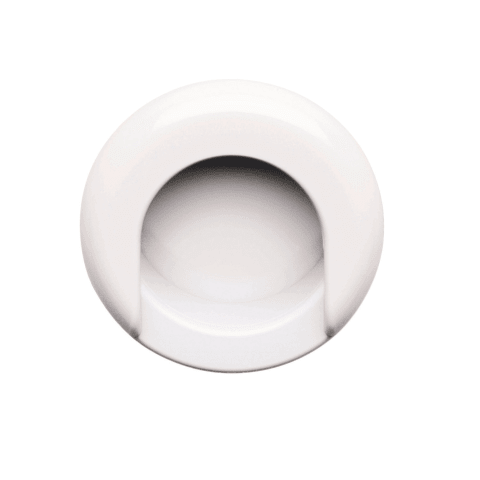 HEWI Muschelgriff 535.42ML; Montage: zum Einlassen; Ausführung: Griffmulde von unten offen; Material: Kunststoff; Form: rund; Einsatzbereich: Möbel; Farbe: weiß; Farbton: signalweiß; Höhe: 18 mm; Durc