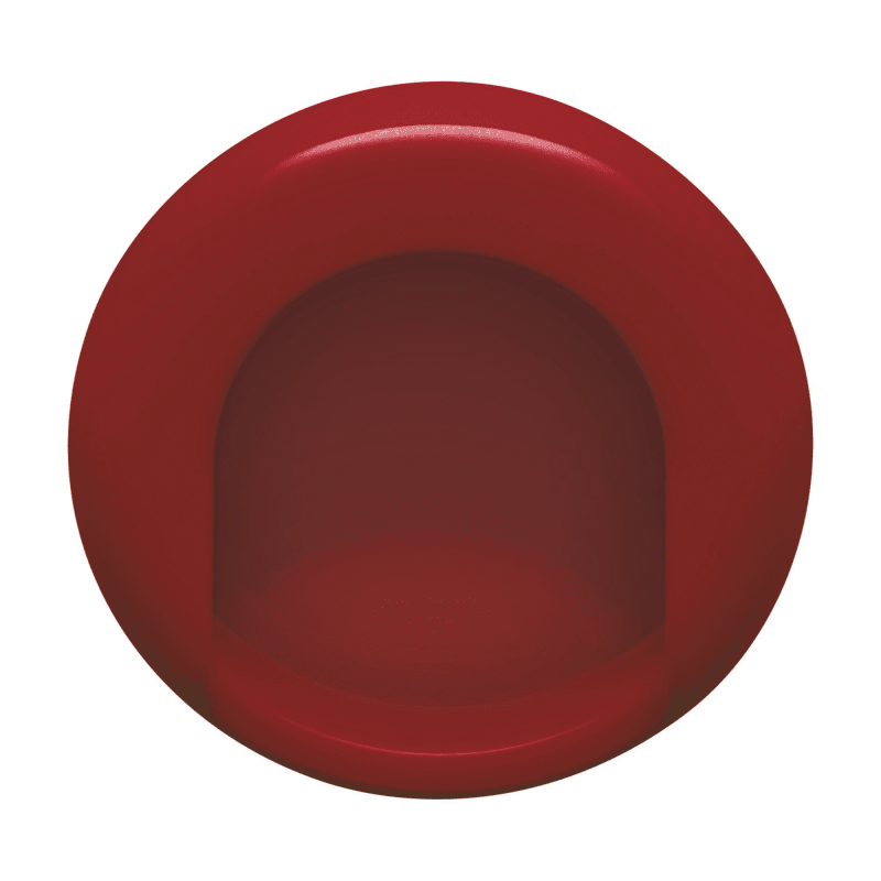 HEWI Muschelgriff 535.75ML; Montage: zum Einlassen; Ausführung: Griffmulde von unten offen; Material: Kunststoff; Form: rund; Einsatzbereich: Möbel; Farbe: rot; Farbton: rubinrot; Höhe: 22 mm; Durchmesser: 75 mm; Oberfläche: durchgefärbt; Einlasstiefe: 13 mm; Einlassdurchmesser: 70 mm; Basis: Muschelgriff