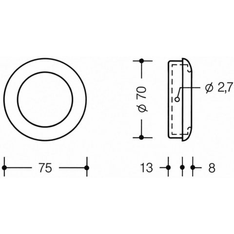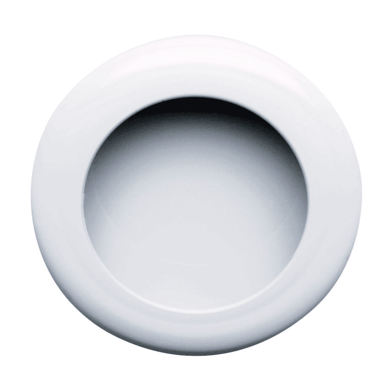 HEWI, Möbel-Muschelgriff, Ausführung: mit Griffmulde, Montage: zum Einlassen, Modellnummer: 538.75ML, Material: Polyamid, Farbton: 99 reinweiß, Oberfläche: durchgefärbt, Höhe: 21 mm, Durchmesser: 75 m