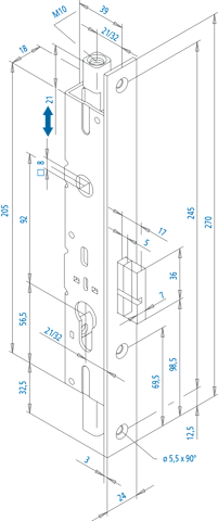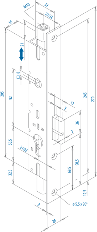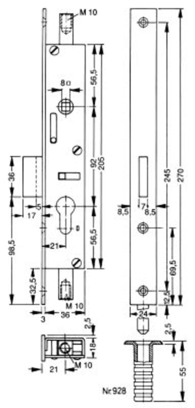 FUHR Treibriegelschloss 298RPV; Produkttyp: Treibriegelschloss; Produkttyp (Hersteller): Stangenschloss; Verriegelung: manuell; Entriegelung: manuell; Stulpform: Flachstulp; Material Stulp: Stahl; Ein