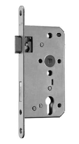 BMH Einsteck-Schloss Nr. 3, nach DIN 18 251 Klasse 3. Schlosskasten: bei 55, 60 und 65 mm Dorn geschlossen, sonst offen, verzinkt. Falle: bei 55, 60 und 65 mm Dorn, Zinkdruckguss, sonst Stahl verzin