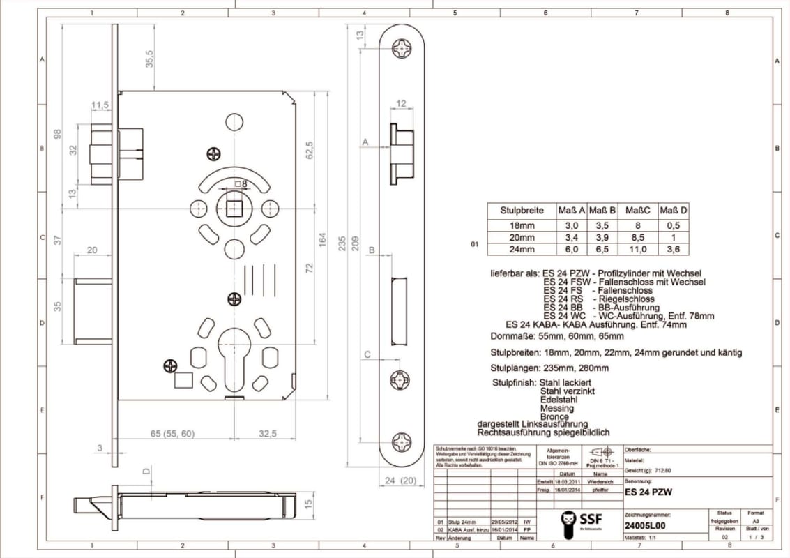 Kunden kauften auch zu "EINSTECKSCHLOSS ES 24 KL.4 WC FR 20/65 78 08 LS ST.ER A2401N8L/541 M.FL.FA."