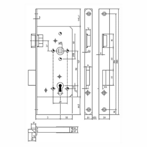 Haustür-Einsteckschloss 154-1/2-PZW/60-R-20-A-48