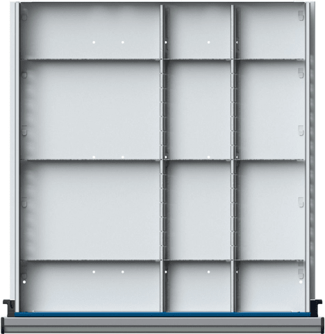 Schubladen-Einteilungsset, 1/2–1/4-Teilung • Passend für Werkbankschubladen • Bei Bestellung bitte Fronthöhen der Schubladen beachten