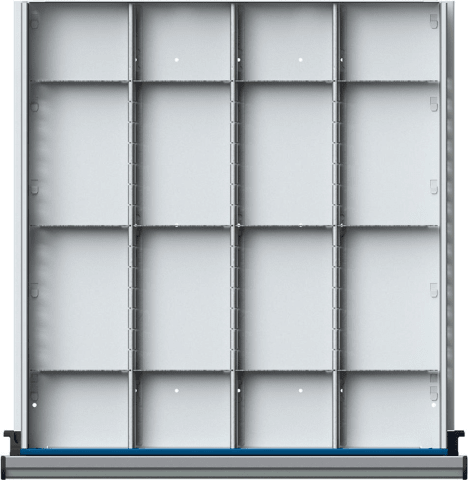 Schubladen-Einteilungsset, 1/4-Teilung • Passend für Werkbankschubladen • Bei Bestellung bitte Fronthöhen der Schubladen beachten