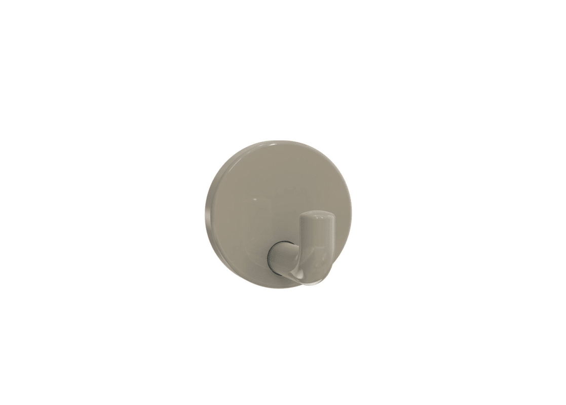 HEWI Haken 477.90.010; Ausführung: mit Rosette; Material: Kunststoff; Befestigungsart: verdeckt verschraubt; Einsatzbereich: Wand; Farbe: braun; Farbton: sand; Tiefe: 45 mm; Oberfläche: hochglanz; Mon