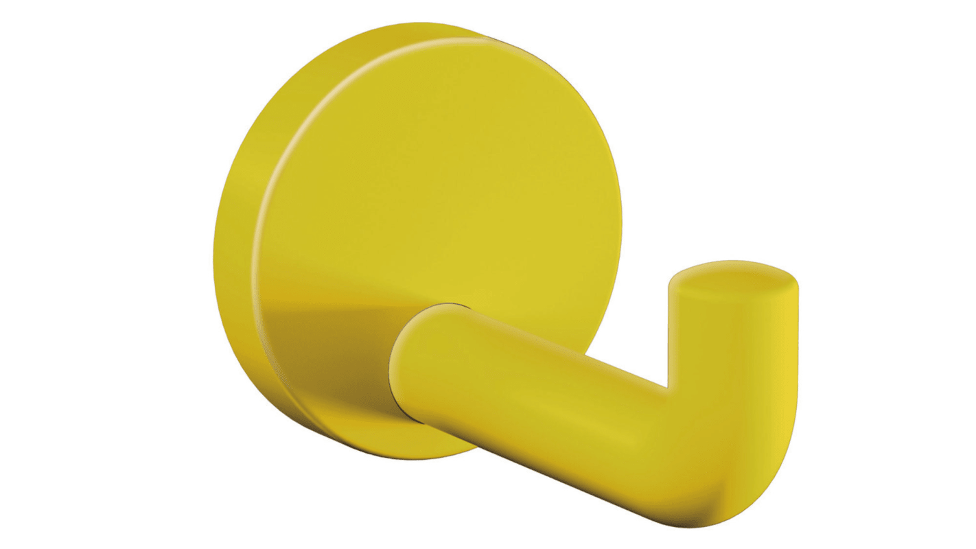 HEWI Haken 477.90B030; Ausführung: mit Rosette; Material: Kunststoff; Befestigungsart: verdeckt verschraubt; Einsatzbereich: Wand; Farbe: gelb; Farbton: senfgelb; Tiefe: 100 mm; Oberfläche: matt; Mont