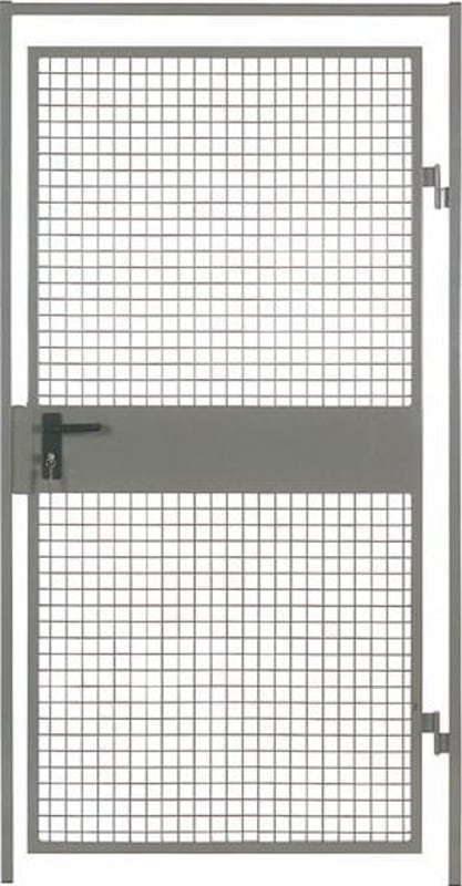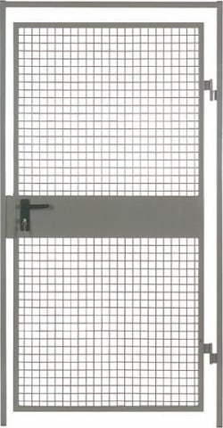 Drahttrennwandsystem • Flachgitterkonstruktion • Einsatzgebiete: Absperrung in Lager und Betrieb, Magazinwand, Raumteiler • Schnelle und einfache Montage • Flachgitter C-Profil, Gitter-Maschung 40 x 40 x 3,8 mm • 30 mm Rahmenprofil • Schweißkonstruktion mit Pulverbeschichtung • Feuerverzinkung gegen Aufpreis möglich • Farbe bitte bei Bestellung angeben links oder rechts verwendbar. Mit Schloss und Drückergarnitur, aber ohne Profilzylinder.