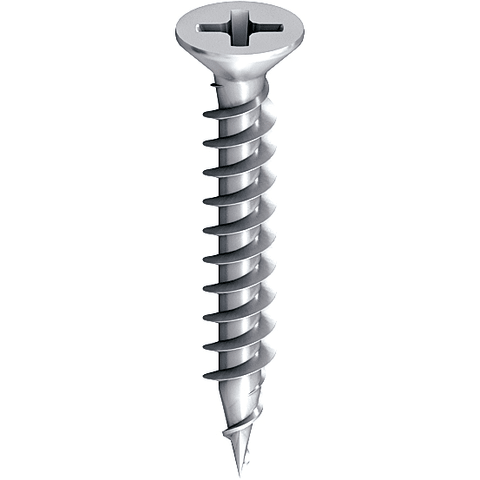 Bohrschraube zur Befestigung von Drehkippbeschlägen in normal- und dünnwandigen PVC-Profilen sowie in Stahl oder GFK-Einschüben und zur Befestigung von Schließteilen, Bändern und Lagern. Eigenschafte