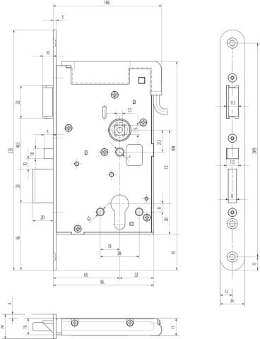 effeff Panik-Einsteckschloss 809M12A; Produkttyp: Panik-Einsteckschloss; Produkttyp (Hersteller): Elektro-Sicherheitsschloss; Ausführung: elektromechanisch; Verriegelung: selbstverriegelnd (automatisc