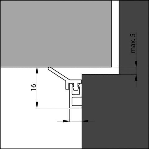 Kunststoffprofil gleich wie PTS, jedoch mit großer Weich-PVC-Lippe. Die Lippe wird mit leichtem Druck gegen die Tür oder Fenster angenagelt, damit der Schließdruck nicht zu stark wird. Mit Bohrungen f