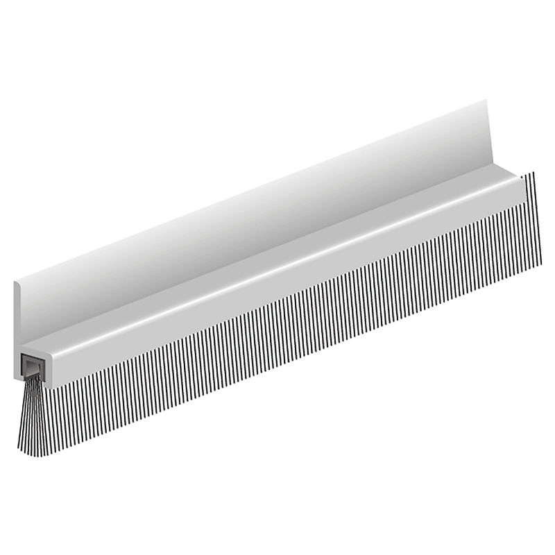 Türbodendichtung aus Alu mit strapazierfähiger Bürste aus Hartpolypropylen. Zum zug- und staubfreien Abdichten von Türen und Toren aller Art. Die Schienen sind für Befestigungsschrauben vorgebohrt.