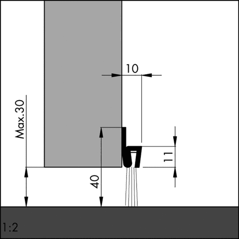 Türbodendichtung aus Alu mit einem Besatz aus Rosshaar. Zum zug- und staubfreien Abdichten von Türen und Toren aller Art, z. B. Garagentore, Hallenschiebe, Roll- und Schwingtore. Die Schienen sind ungebohrt. Gesamthöhe: 40 mm, Bürstenhöhe: 20 mm.