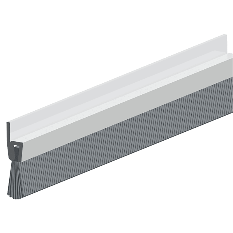 Türbodendichtung aus Alu mit einem Besatz aus Rosshaar. Zum zug- und staubfreien Abdichten von Türen und Toren aller Art, z. B. Garagentore, Hallenschiebe, Roll- und Schwingtore. Die Schienen sind ung