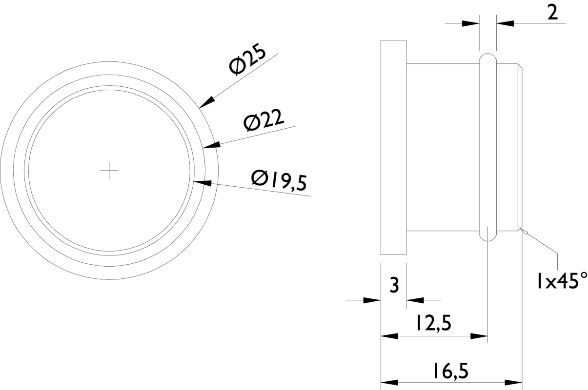 Endkappe zu Schiebetürsystem 9040 ER, Endkappe zu Laufrohr / Außendurchmesser 25,4 mm, Innendurchmesser Rohr 21 mm, Oberfl. 60 (Edelstahl matt)