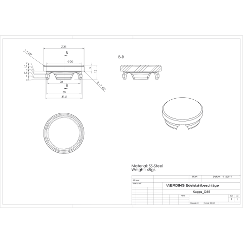 ENDKAPPEN F. EDELSTAHLROHR 35X2 MM EDELSTAHL MATT W2012