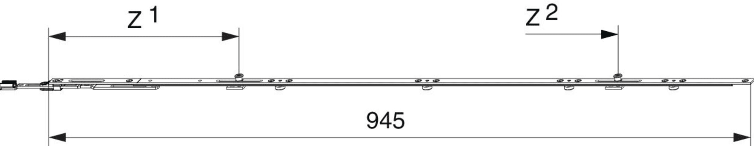 MM Mittelverschluss für Rundbogenfenster fix oben FFH/FFB 671-1.250 mit 2 i.S. silber