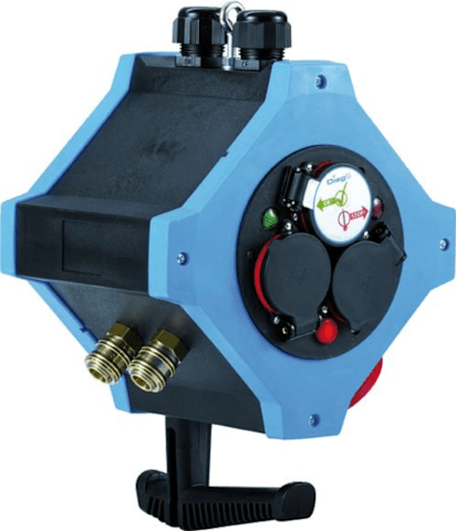 Hängeverteiler e.STATION, mit Druckluftverteile • Kunststoffgehäuse: glasfaserverstärk • Abrundung der Seitenteile aus Gumm • Für Steckdosen und Druckluftverbindunge • Für den Einsatz im Innenbe