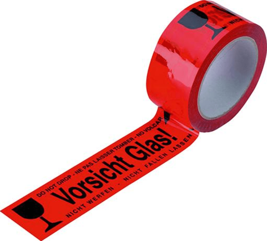 Warnmarkierungsband – „Vorsicht Glas“• PVC-Warnband • Rot, schwarzer Aufdruck • Sehr starke PVC-Folie • Naturkautschuk-Kleber • Leise abrollend