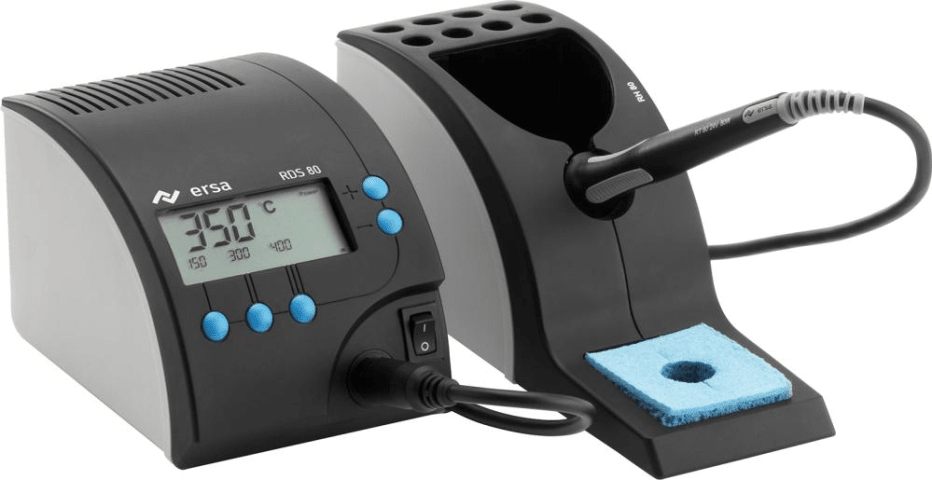 Lötstation DIGITAL RDS 80• Power-Lötstation mit Mikroprozessor-Regelung • Direkte Anwahl von 3 programmierbaren Temperaturen • Features wie Standby- und Auto-Power-Off-Funktion • Großes, gut able