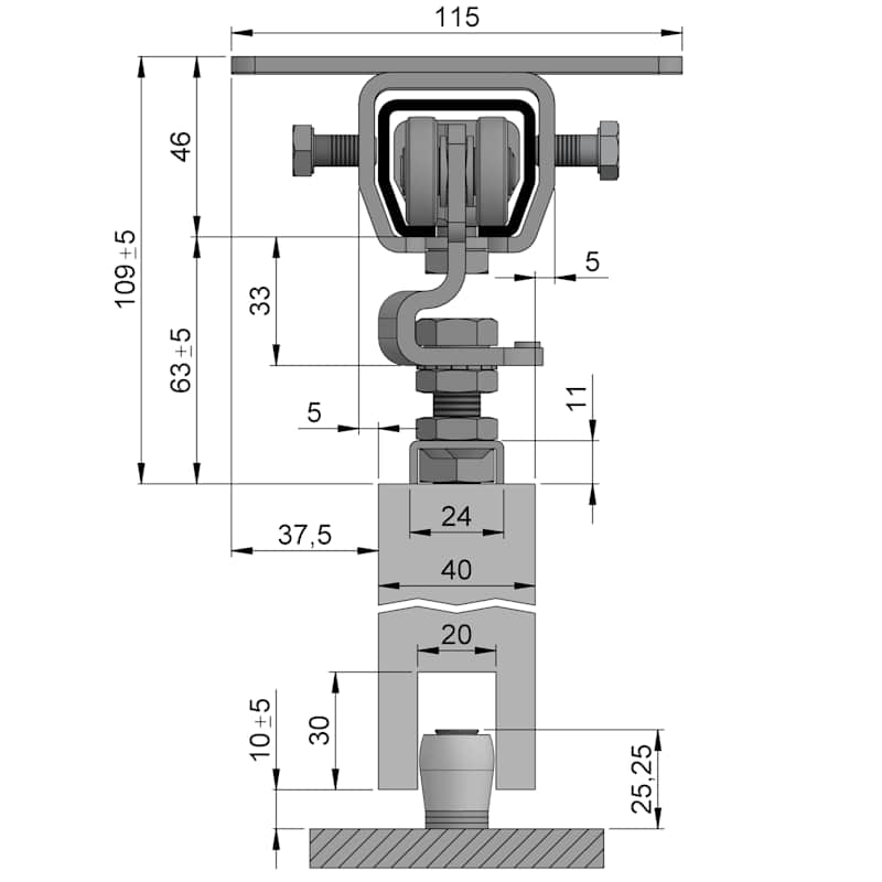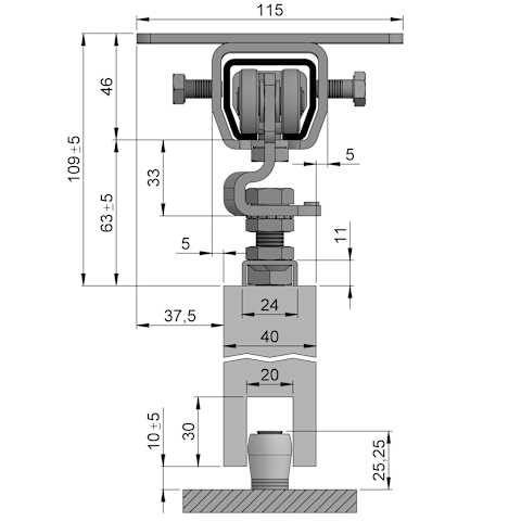 1x Profil 300 2000 mm, 2x Deckenmuffe 302, 1x Befestigungs-/Verbindungsmuffe 307