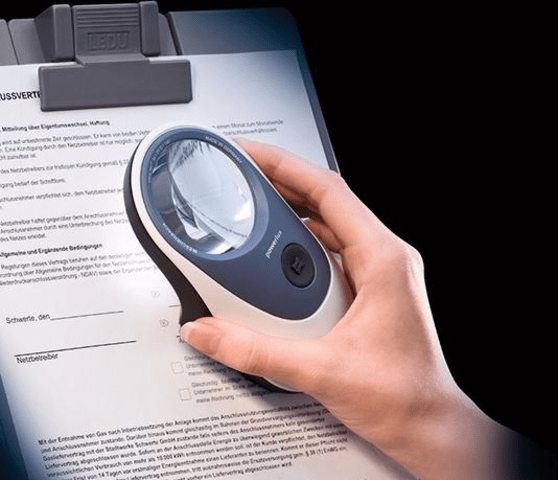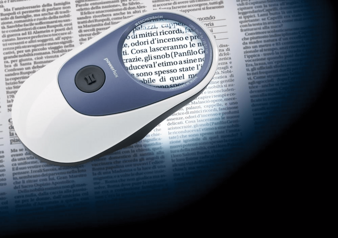 Leuchtlupe powerlux• Liegt sehr gut in der Hand • Gleichmäßig helle und blendfreie Ausleuchtung durch zwei SMD-LED • Linsen beidseitig cera-tec® hartbeschichtet • Abschaltautomatik nach 30 Min. L