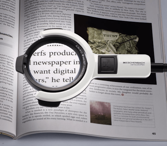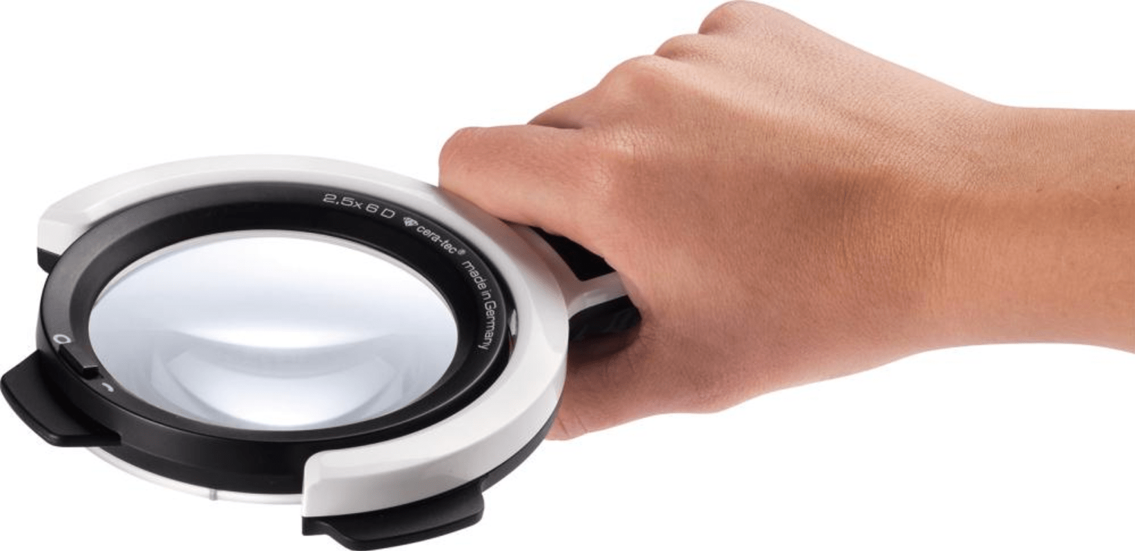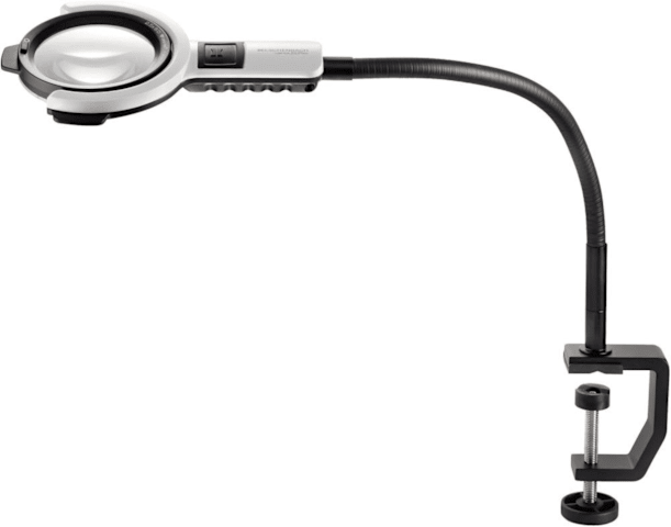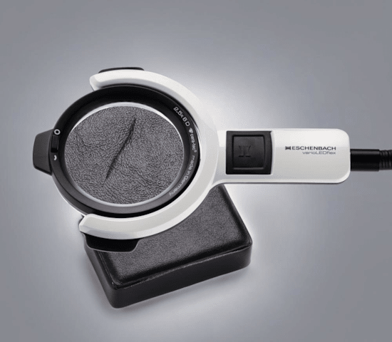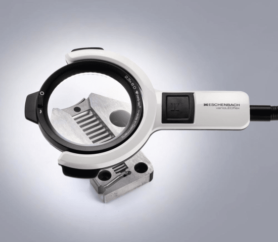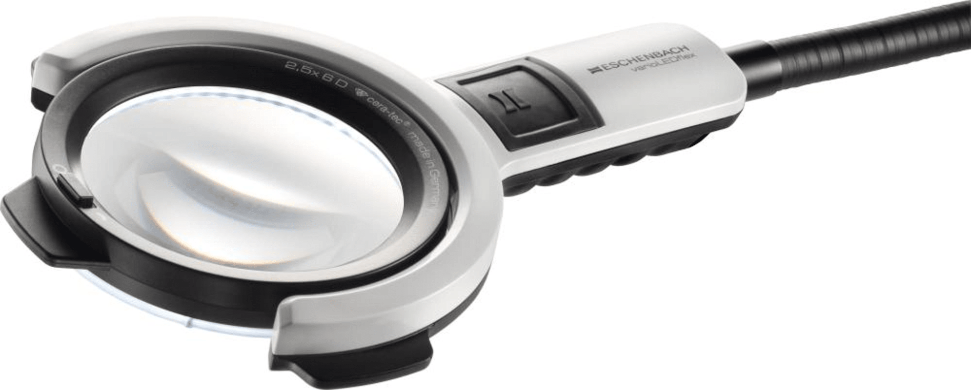 Leuchtlupe vario LED flex• Randscharfe, verzeichnungsfreie Abbildung • Wahlmöglichkeit zwischen schattenfreier LED-Ringbeleuchtung und Segmentbeleuchtung • Geringes Gewicht und kompakte Abmessungen