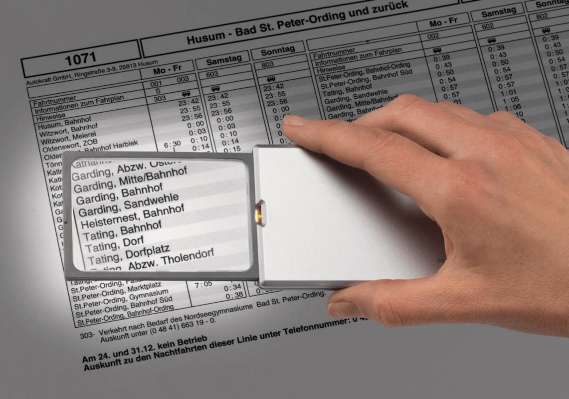 Taschenleuchtlupe easyPOCKET• Vergrößerung und Licht im Scheckkartenformat • Diffraktive, asphärische Linse • Beleuchtung durch superflache SMD-LED Lieferung : Inklusive 2 Knopfzellen CR2025.