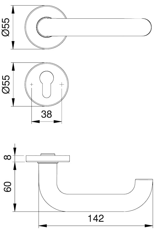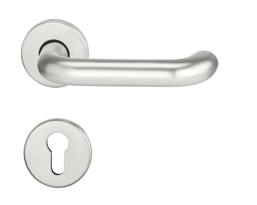 Halbgarnitur Riva 2103/5356, Rosette, rund, Profilzylinder gelocht, Vierkant 10mm, DIN Links-Rechts, ohne Stütznocken, edelstahl matt festdrehbar