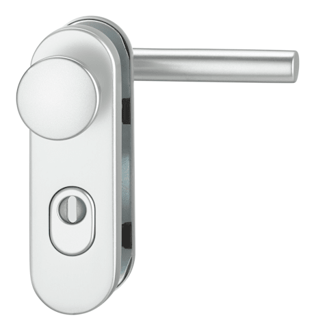 FH Vollblatt Sicherheits-Wechselgarnitur Logo/k 5795/0772,Kurzschild,ES 1,mit Zylinderabdeckung 72/9,DIN Links-Rechts,edelstahl matt,Türstärke39-48,rund/Gehrung fest