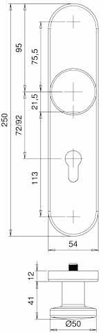 FH Vollblatt Sicherheits-Wechselgarnitur Logo/L 5753/0772,Langschild,ES 1,ohne Zylinderabdeckung 72/9,DIN Links-Rechts,edelstahl matt,Türstärke39-48,rund/U-Form fest
