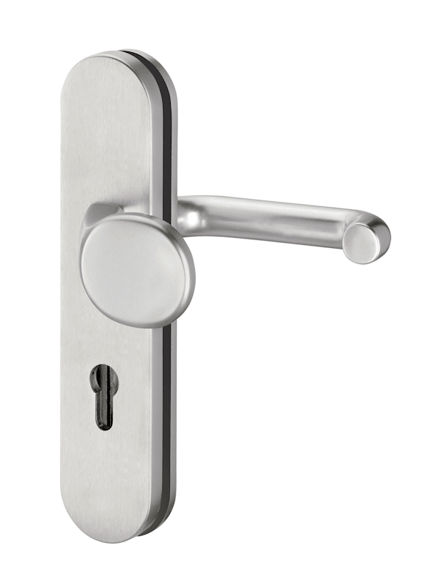 FH Vollblatt Sicherheits-Wechselgarnitur Logo/L FS 5753/0292,Langschild,ES 1,ohne Zylinderabdeckung 92/9,DIN Links-Rechts,edelstahl matt,Türstärke39-48,gekröpft/U-Form fest