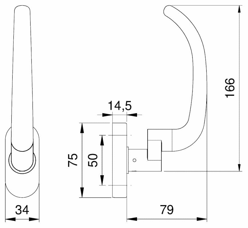 FH Standflügelgarnitur Ares 1440, ohne Schlüsselrosette, oval, Vierkant 9mm ohne Stütznocken, edelstahl matt
