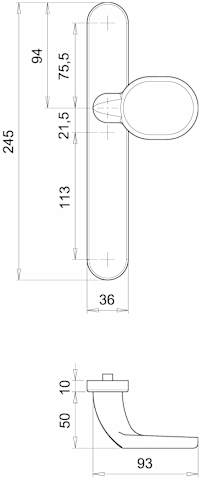 Knopfschild Kronos 0000/2135, außen, Langschild oval, ungelocht, DIN Links-Rechts, mit Stütznocken, edelstahl matt