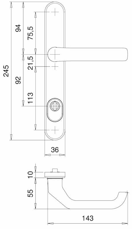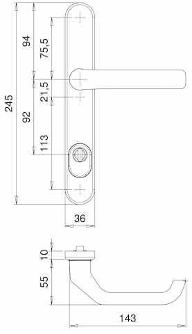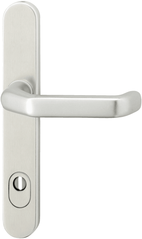PA Rohrrahmen Sicherheits-Drückergarnitur Kronos 1201/0046,Langschild,mit Zylinderabdeckung 92/9,DIN Links-Rechts,edelstahl matt,U-Form gekröpft/U-Form gekröpft