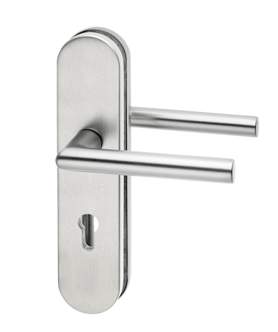 Vollblatt Sicherheits-Drückergarnitur Lima 8760/9203,Langschild,ohne Zylinderabdeckung 92/10,DIN Links-Rechts,edelstahl matt,Türstärke65-75,L-Form/L-Form