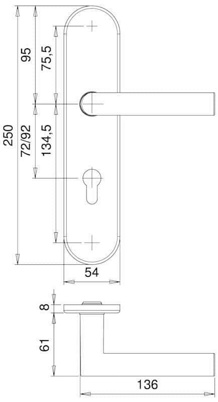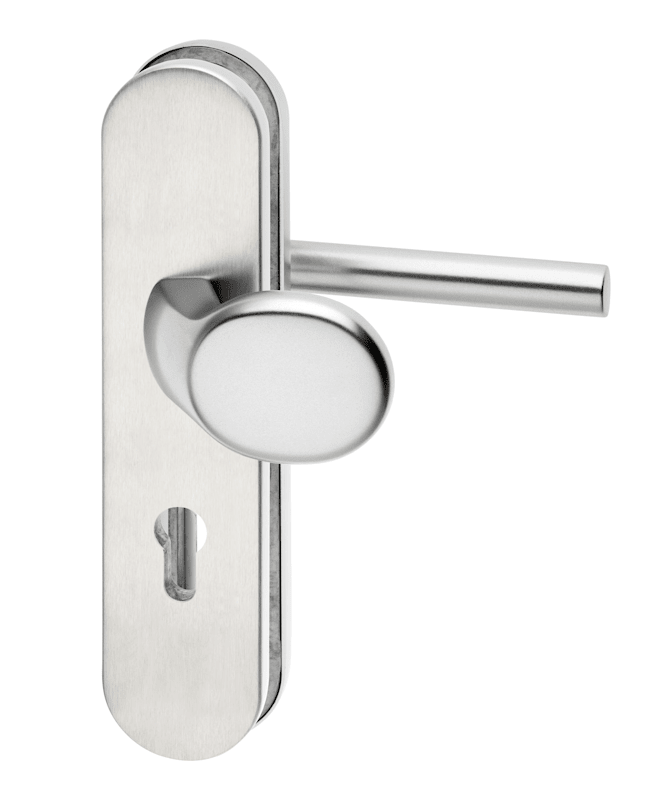 Vollblatt Sicherheits-Wechselgarnitur Lima 8760/0272,Langschild,ES 0,ohne Zylinderabdeckung 72/8,DIN Links-Rechts,edelstahl matt,Türstärke35-45,gekröpft/L-Form fest