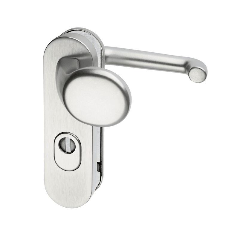 Vollblatt Sicherheits-Wechselgarnitur Logo 8715/0272,Kurzschild,ES 1,mit Zylinderabdeckung 72/8,DIN Links-Rechts,edelstahl matt,Türstärke35-45,gekröpft/U-Form fest
