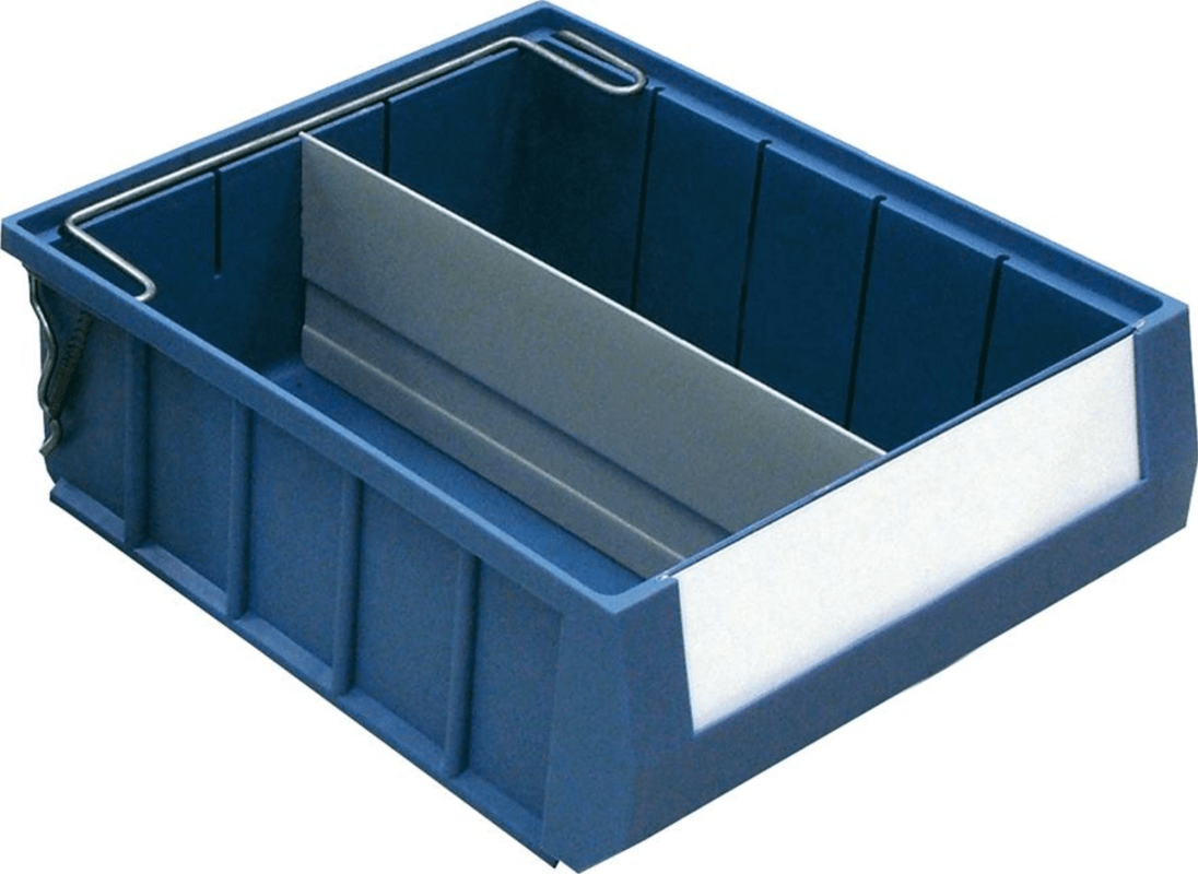 Etiketten für Kunststoff-Regalkästen • Zubehör für Kunststoff-Regalkästen • VE: 10 Stück Abbildung zeigt Regalkasten mit Etikett.