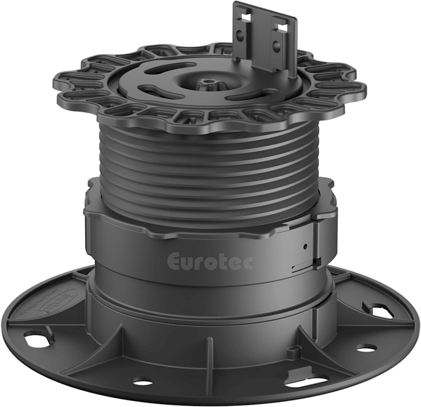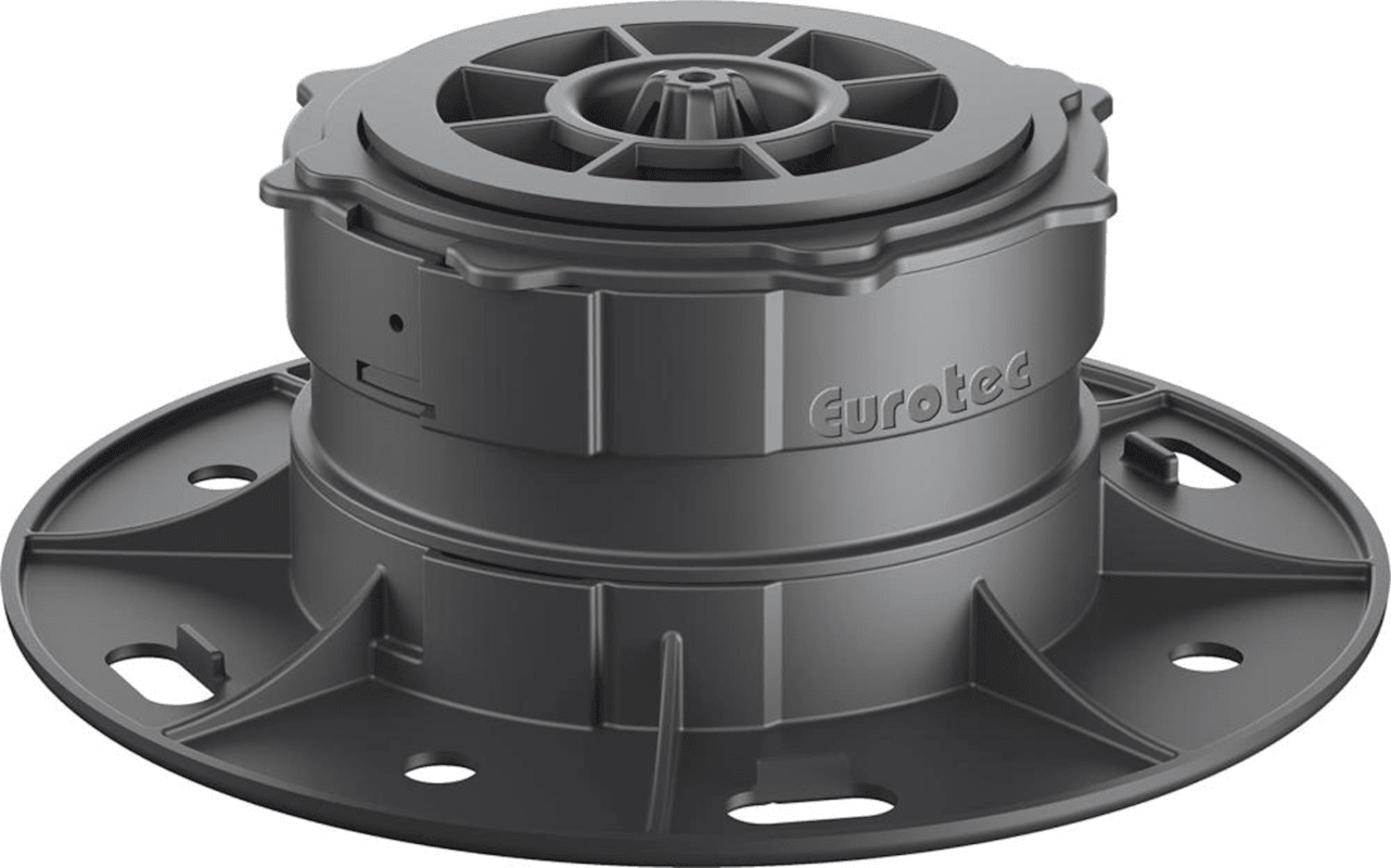 Verstellfuß Profi-LineFür Holz- und Steinterrassen in diversen Aufbauhöhen geeignet. • Hohe Tragfähigkeit von 8,0 kN/Fuß • Grundaufbauhöhen von 10 – 168 mm • Höhenerweiterung durch Erweiterungsrin